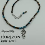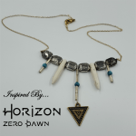 I knew I wanted to make and sell jewelry, but I also knew that the jewelry market was extremely over-saturated. So, I decided I would focus on making jewelry inspired by movies, games, and just random things that I liked. First, I searched for things on Etsy inspired by Disney, but I learned quickly that that would never work – talk about over-saturated – and then I started thinking about a game I had recently played and loved, Horizon Zero Dawn. When I searched for that I found a HUGE gaping hole just waiting for products to become available. Thus, I created a series of what I thought to be beautiful and unique pieces of jewelry.