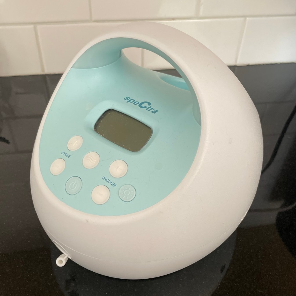 Because my momcozy wasn’t right for the size of my breasts, our lactation expert lent us a different pump to try: Spectra S1. This pump wasn’t as mobile as the momcozy, but it had more flow and release settings, and seemed more effective.
